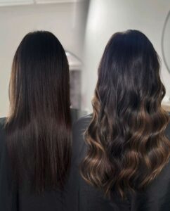 4. STRAIGHTENING: Straightening hair extensions that have curl patterns can cause shedding. Be sure to use a heat protector that doesn’t contain alcohol.